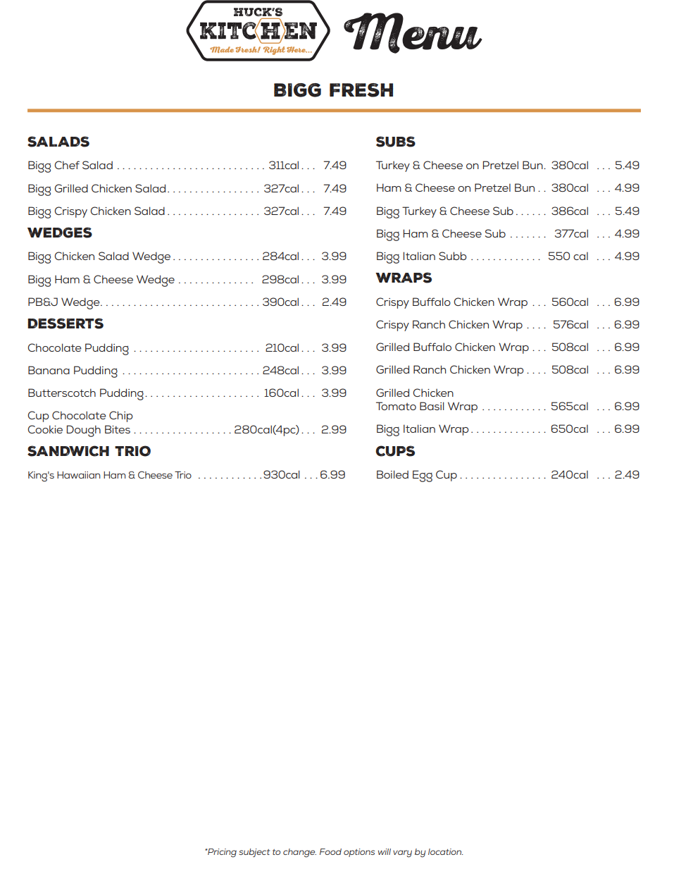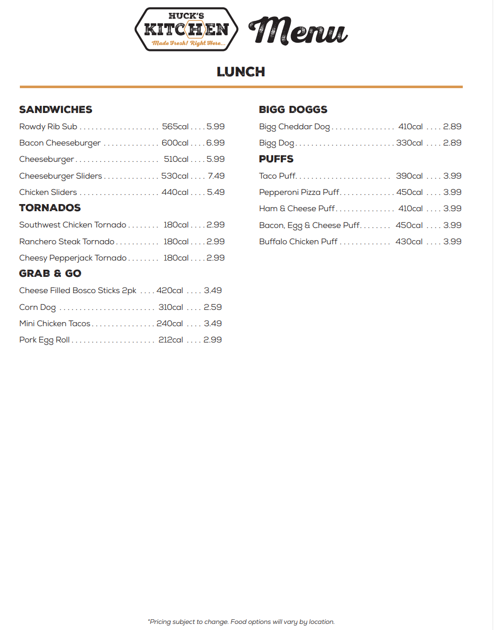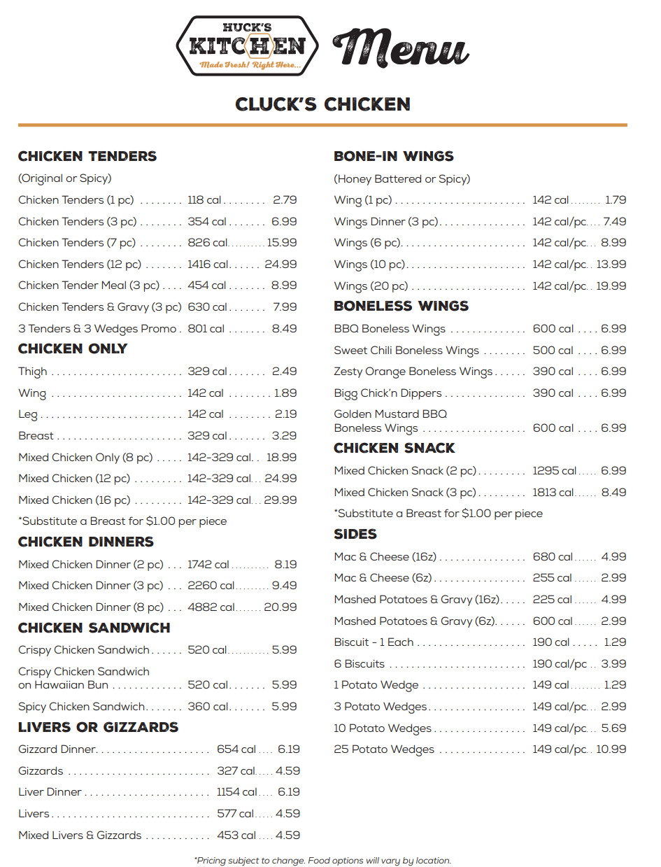 -Huck’s Kitchen Menu